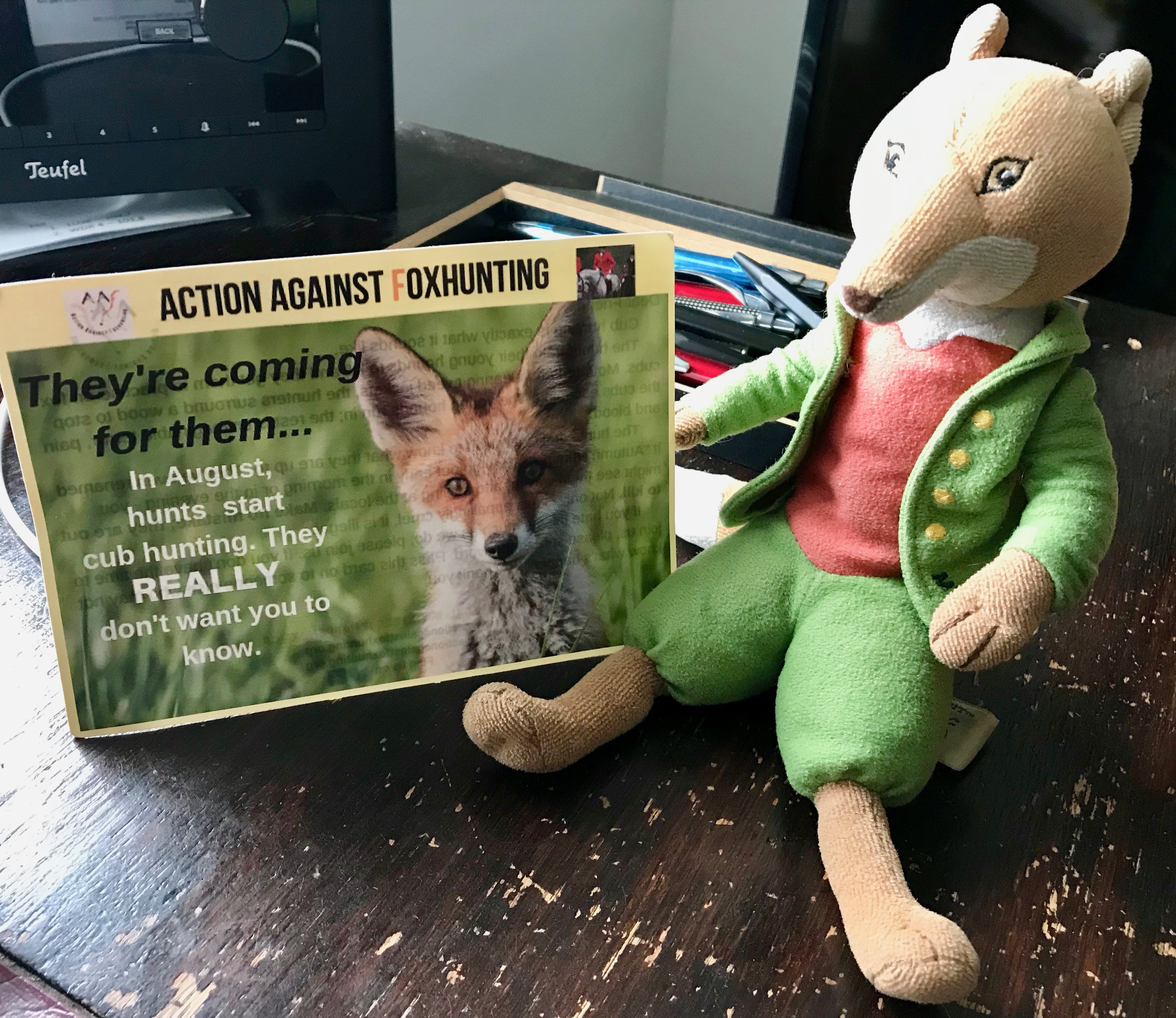 Selbstverständlich ist dieser Fuchs (aus Schottland) gegen die Fuchsjagd (Protestkarte aus Cornwall). (Foto: Bernd Berke)