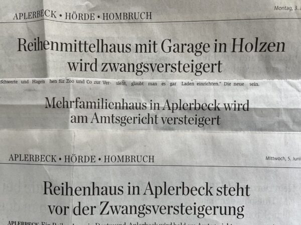 Seltsame Artikel-Serie über Zwangsversteigerungen